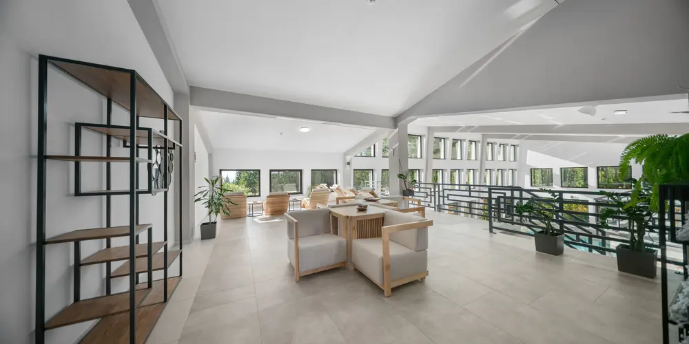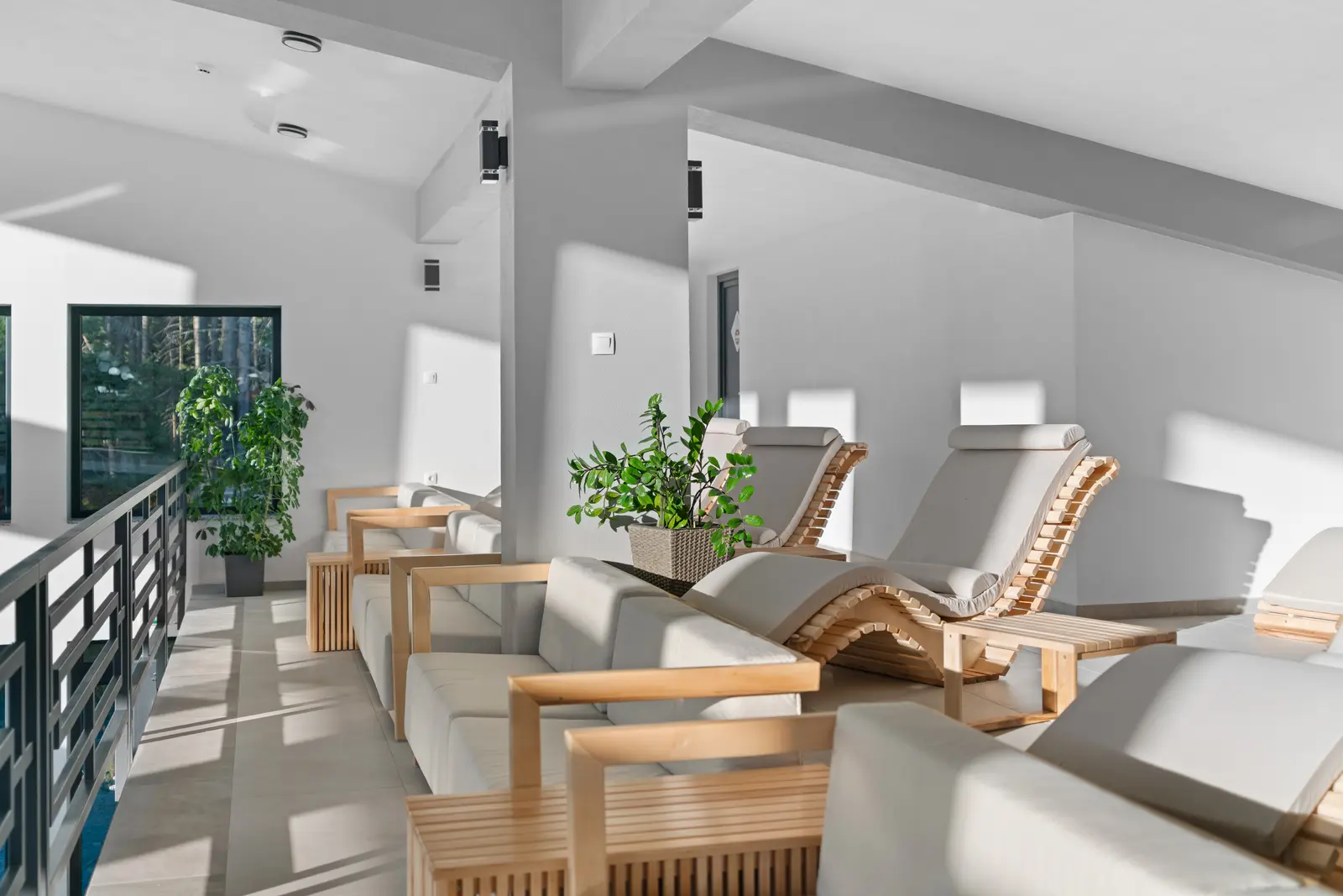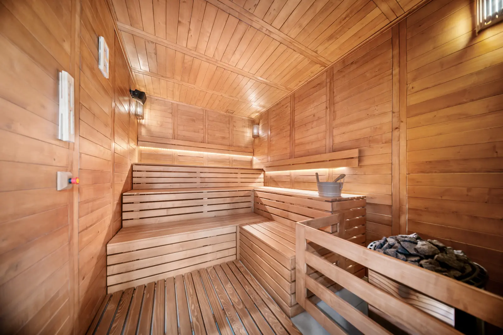 Szauna zóna: 1 gőz szauna, 1 infra szauna és 2 finn szauna, valamint egy egyedülálló panoráma szauna a teraszi zónában