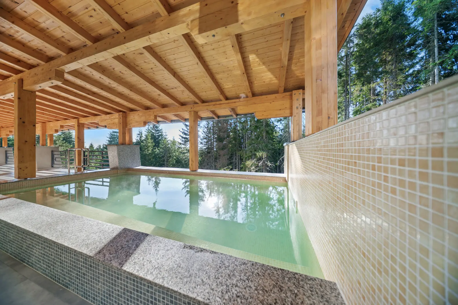 Panorámás kültéri sós medence 3 méter széles, 5,65 méter hosszú és 1,15 méter mély