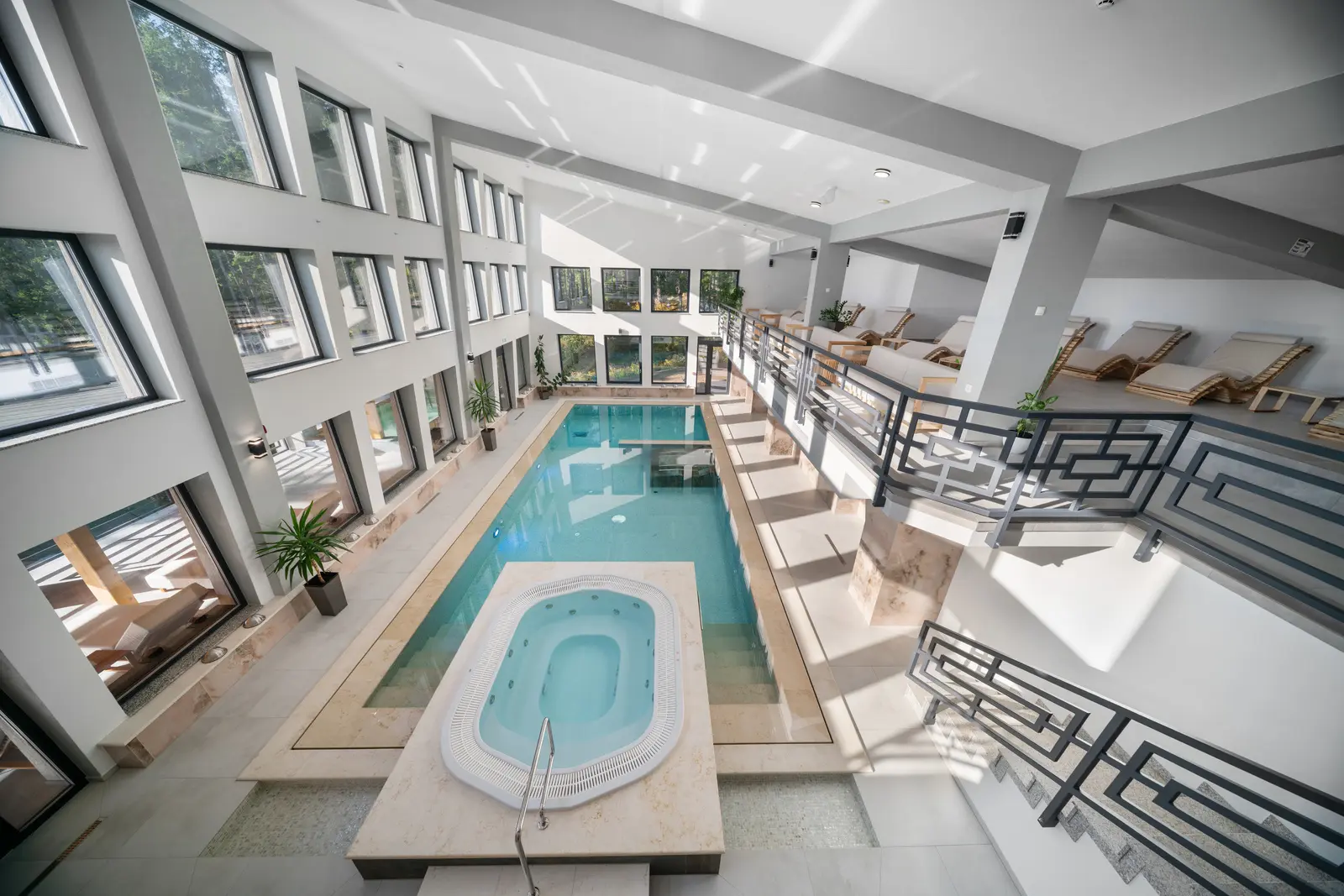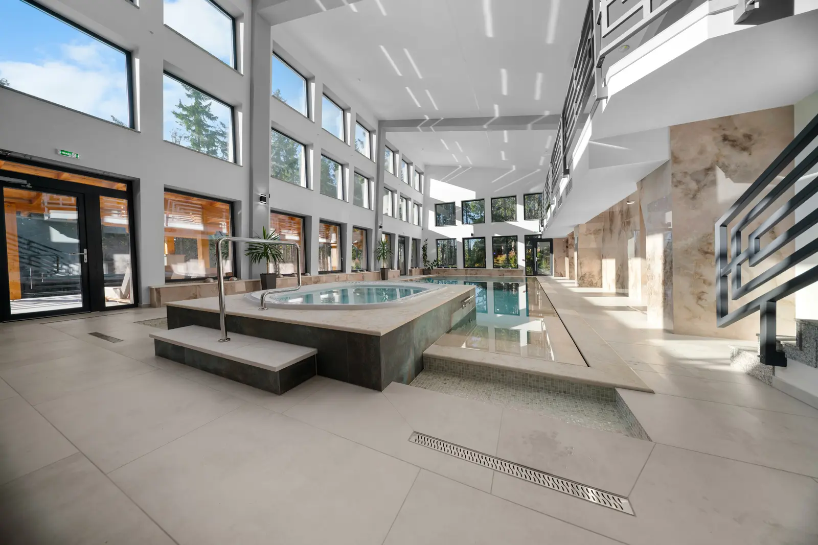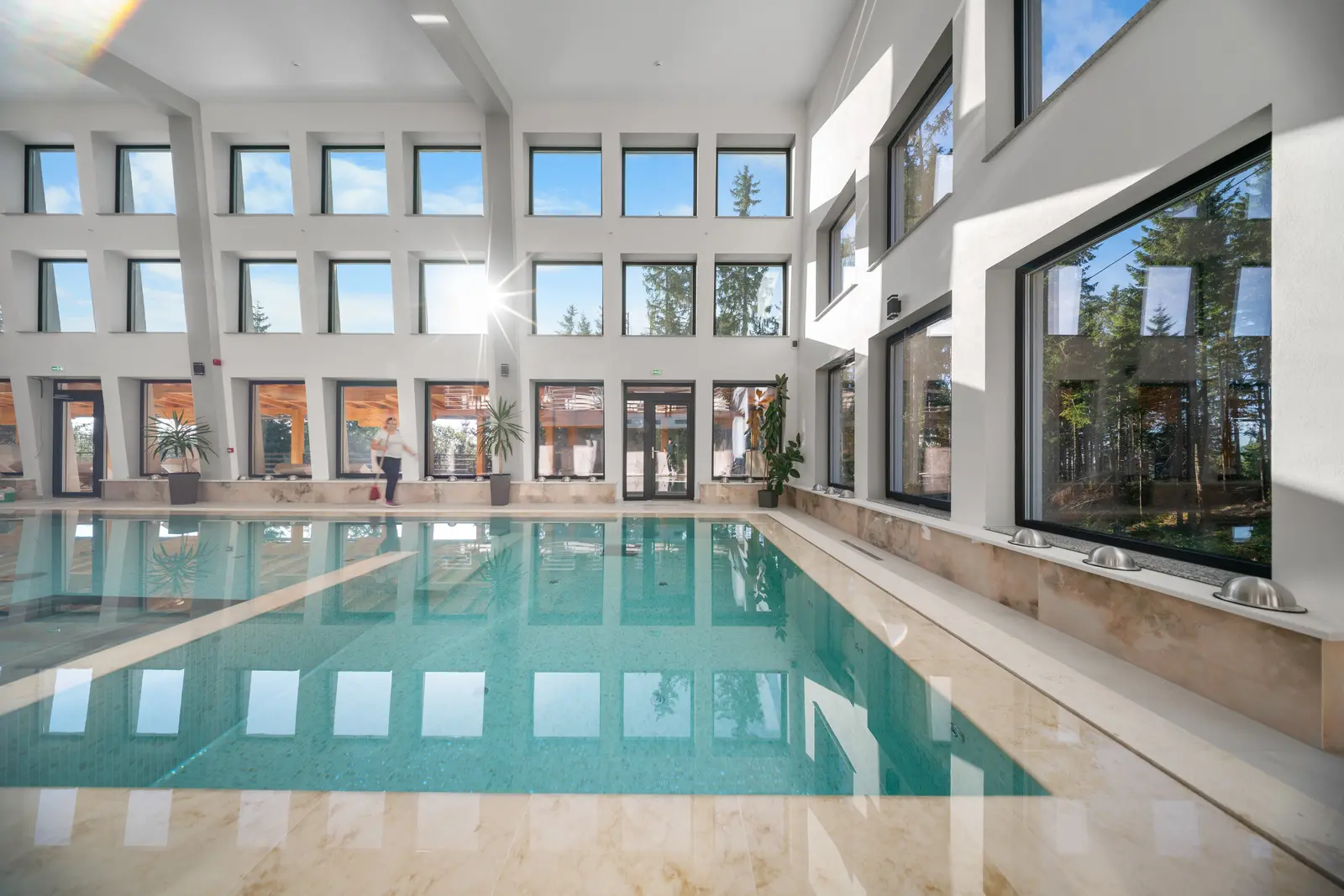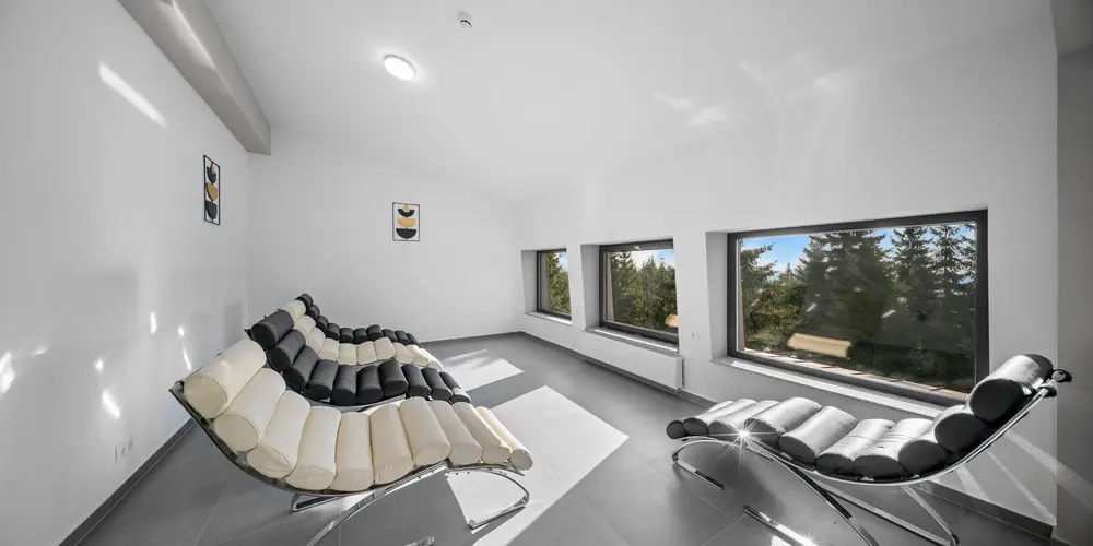 Zonă de saună: 1 saună cu aburi, 1 saună cu infraroșu și 2 saune finlandeze, precum și o saună panoramică unică în zona terasă.