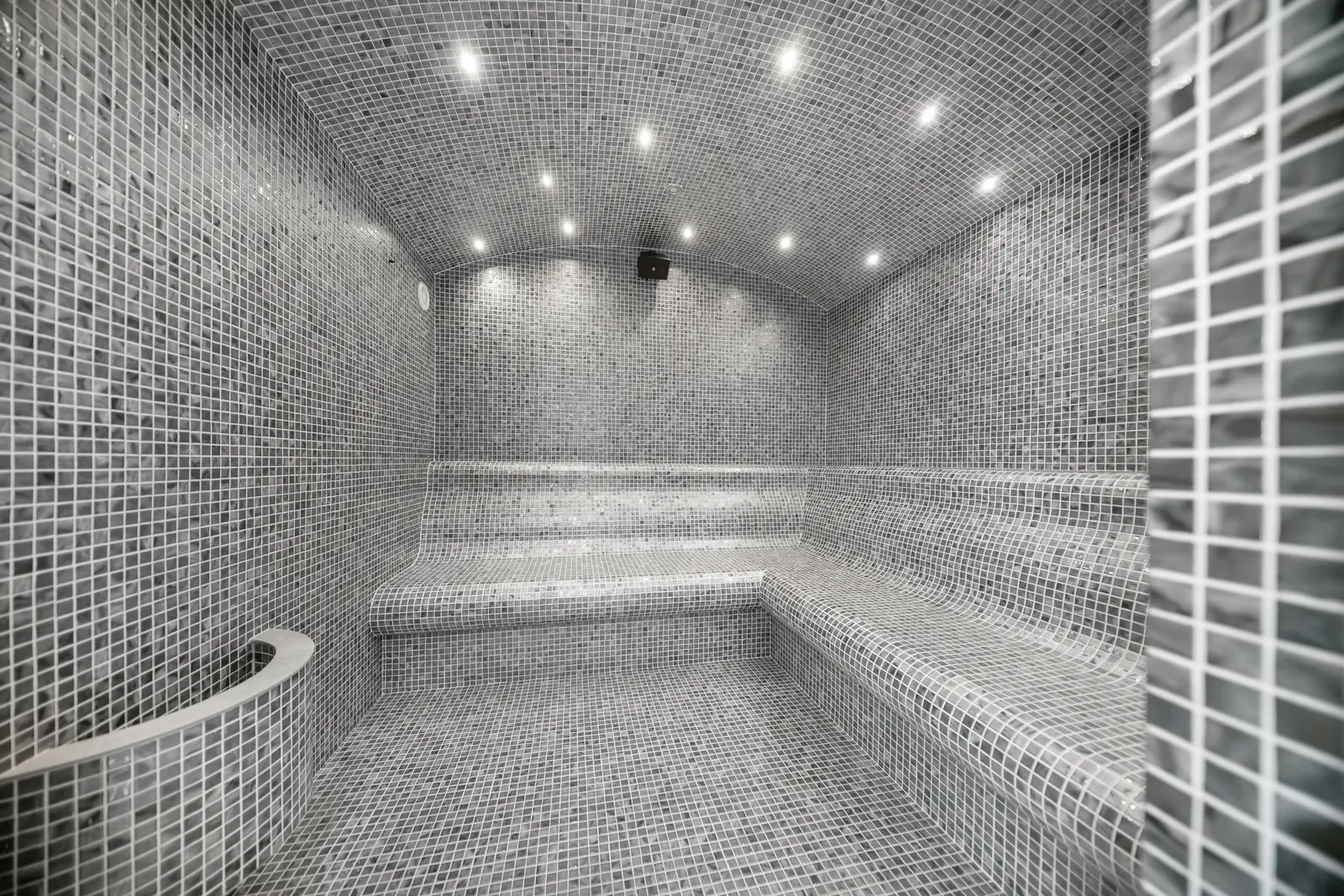 Camera cu infraroșu este echipată cu 3 paturi infraroșu pentru o relaxare completă. Două bazine de imersie, unul cu apă rece și unul cu apă caldă, sunt disponibile pentru revigorare după sesiunile de saună.