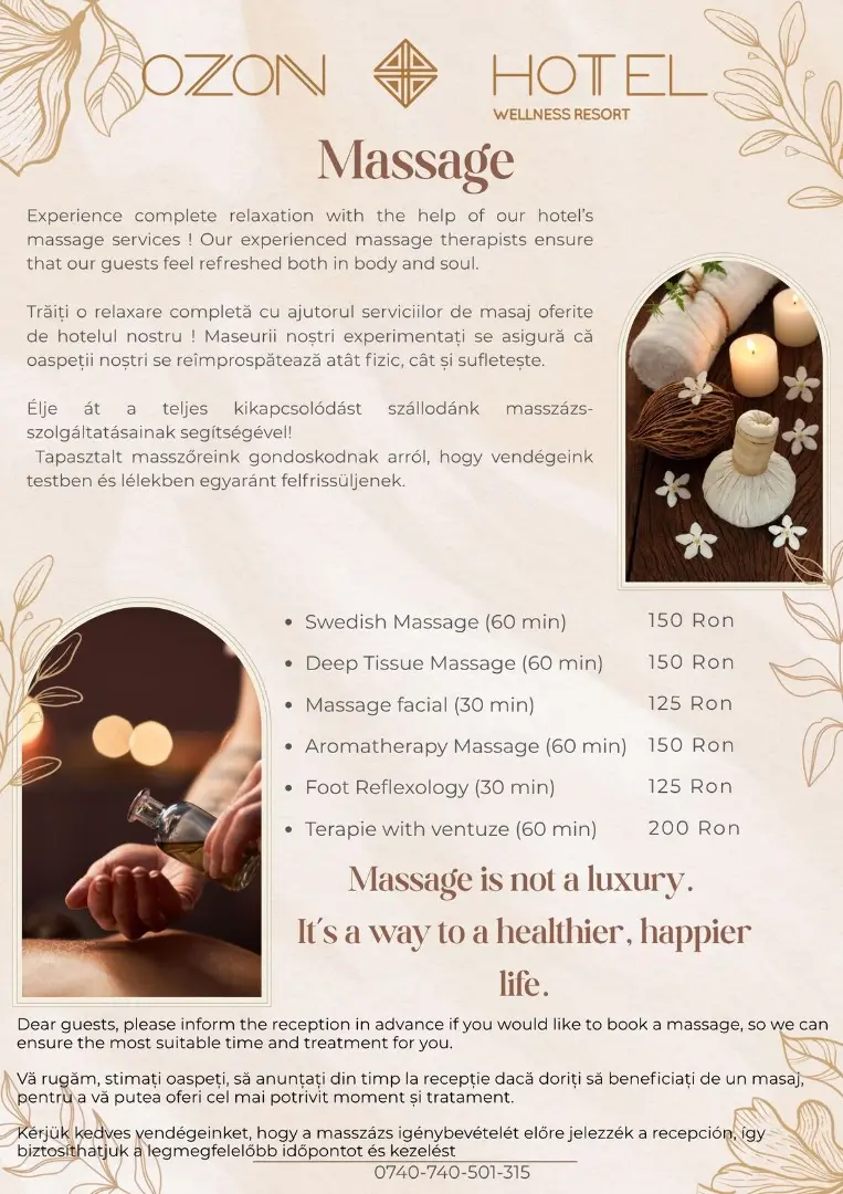 Fiecare element al zonei wellness OZON este conceput pentru a restabili armonia corpului și a minții, iar proximitatea naturii și priveliștile panoramice transformă relaxarea într-o experiență cu adevărat specială.