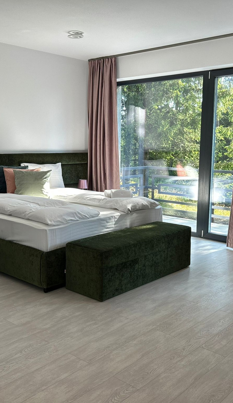 Cameră spațioasă, elegantă și mobilată modern, oferind tot confortul pentru relaxare. Vedere panoramică asupra Munților Harghita și o experiență exclusivă de wellness în apropierea hotelului.